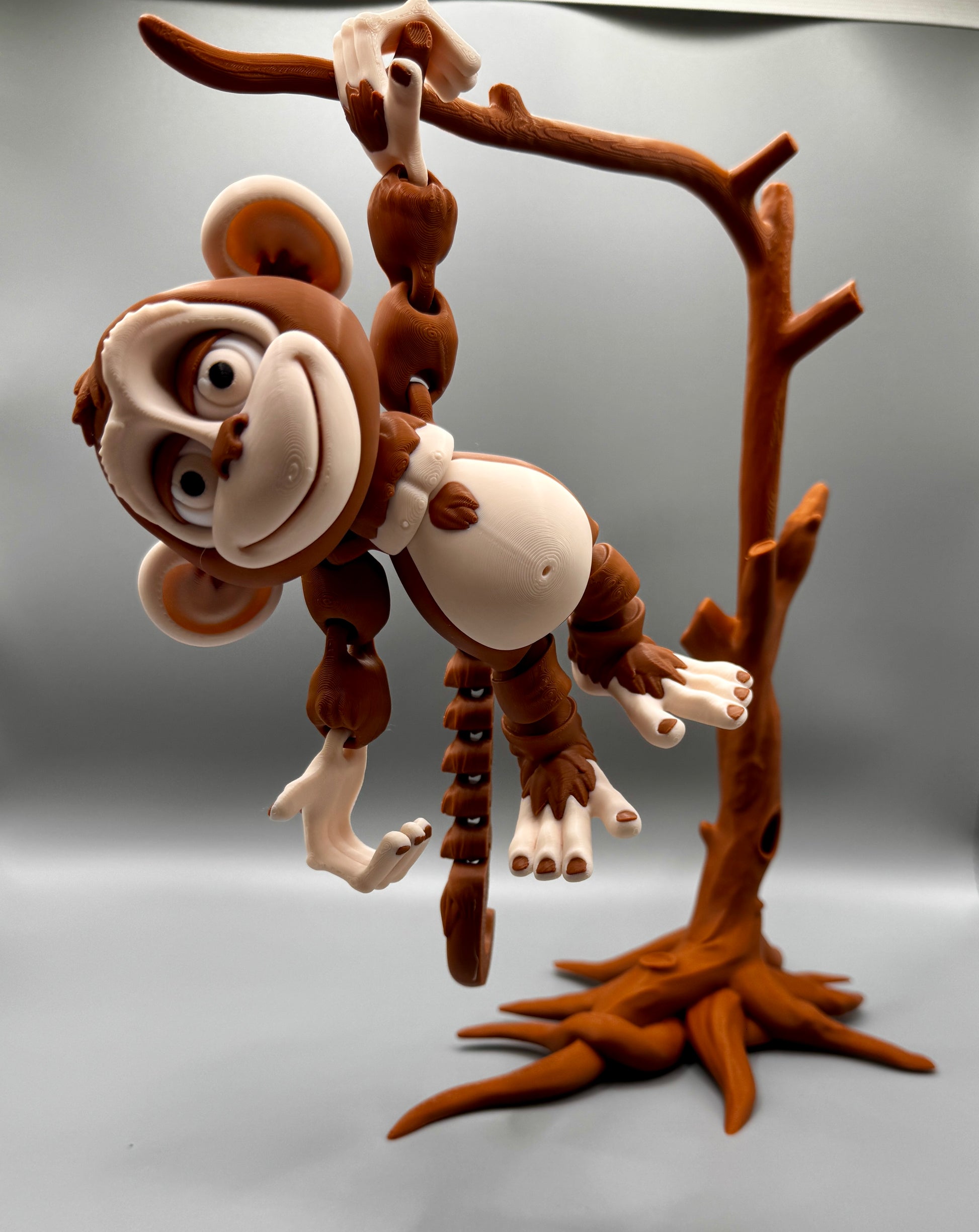 Meet your new favourite 3D-printed companion! This fully articulating monkey is not just adorable—it’s incredibly versatile. With movable joints, he can stand upright on his own two legs, hang from his tail or hands, and even wiggle his ears. You won’t believe how cute he looks perched on a branch, hanging from a plant, or striking a pose on your desk!